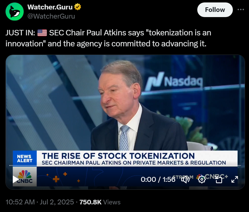 Помимо фиксированного дохода, растет интерес к токенизированным акциям. Платформы такие как Robinhood и Kraken представили продукты на основе токенизированных акций, в то время как SEC рассматривает изменения правил, которые могут позволить токенизацию и торговлю традиционными акциями на криптобиржах — перемена, которая может ускорить институциональное принятие.