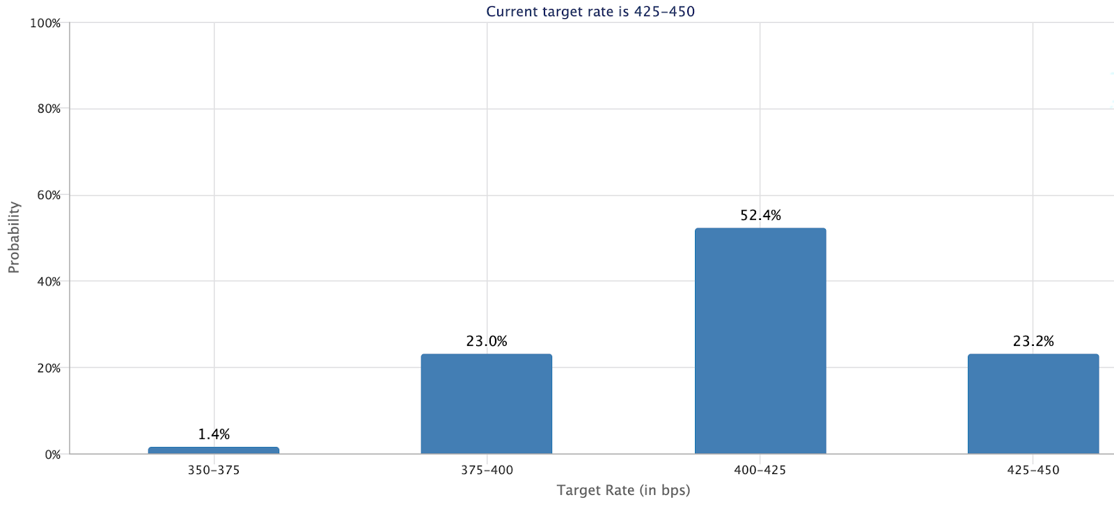 - Ожидания в отношении ставки ФРС возвращаются к прогнозированию большего количества снижений ставок в 2025 году, и участники рынка делают ставку на 52% вероятность снижения на 25 базисных пунктов в июне.
