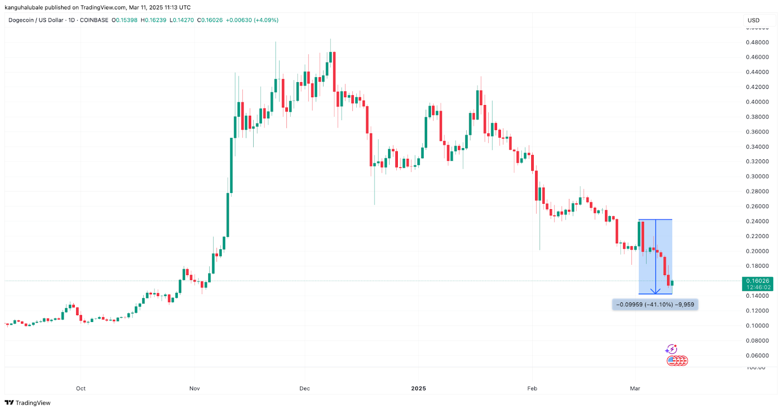 Дневной график цены DOGE/USD. Source: TradingView