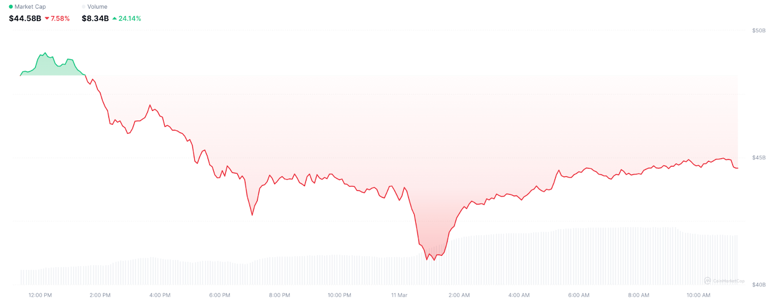 - Dogecoin потерял 41% своей стоимости с 3 по 11 марта.