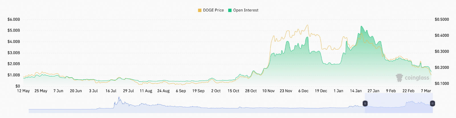 Открытый интерес фьючерсов DOGE. Source: CoinGlass