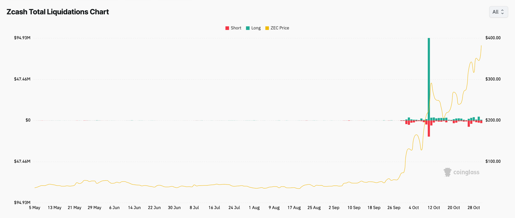 Фьючерсы на ZEC столкнулись с ликвидацией на общую сумму около $65 миллионов за последние две недели, причем более половины этих позиций были короткими, согласно оценкам CoinGlass.