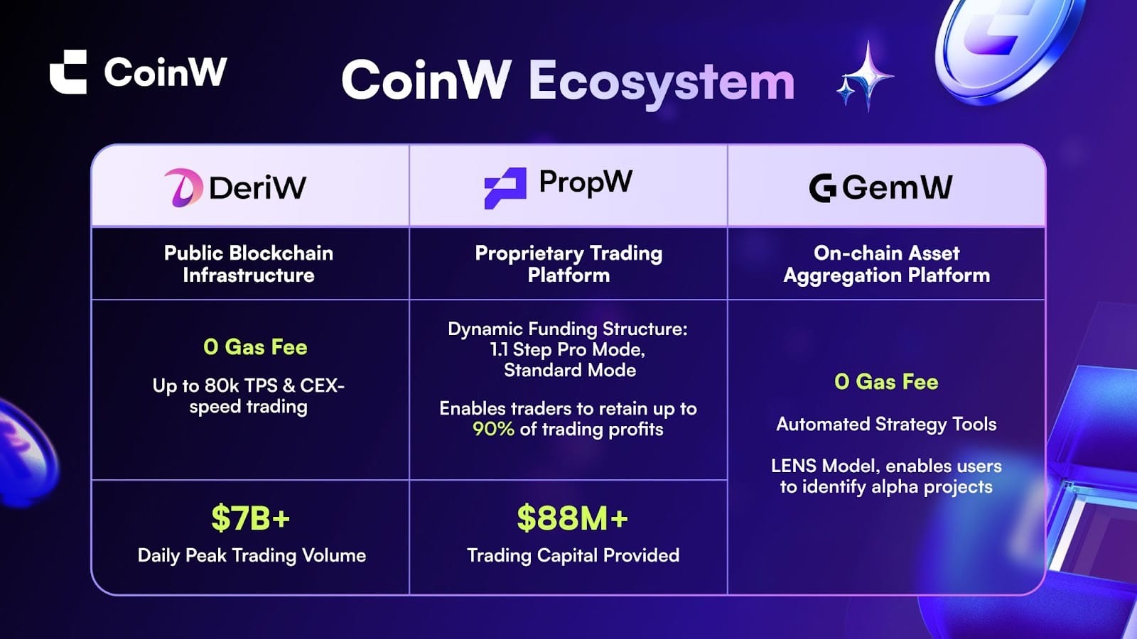 В августе 2025 года CoinW завершила масштабное обновление платформы. Это обновление ознаменовало переход платформы от автономной централизованной биржи к более широкому экосистеме цифровых активов.