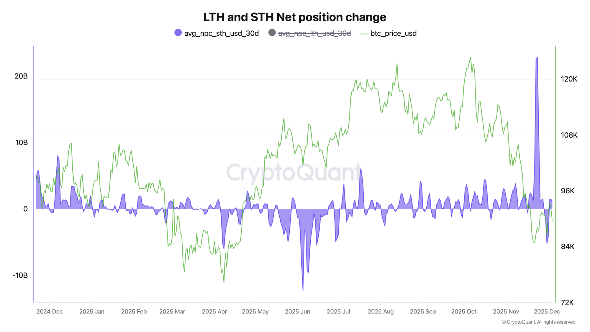 Изменение чистой позиции когорты STH на скользящей 30-дневной основе показало резкий скачок вверх 24 ноября, как показывает CryptoQuant.