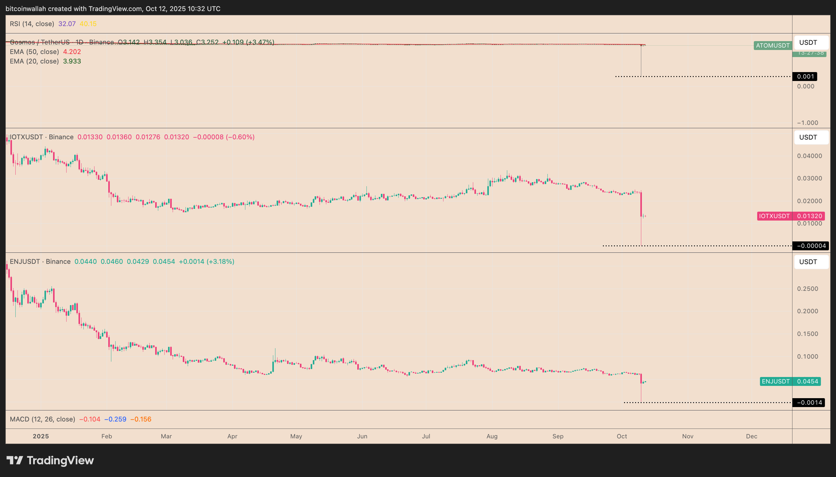Среди таких токенов оказались Cosmos (ATOM), IoTeX (IOTX) и Enjin (ENJ), котировки которых на Binance кратковременно упали до нуля.