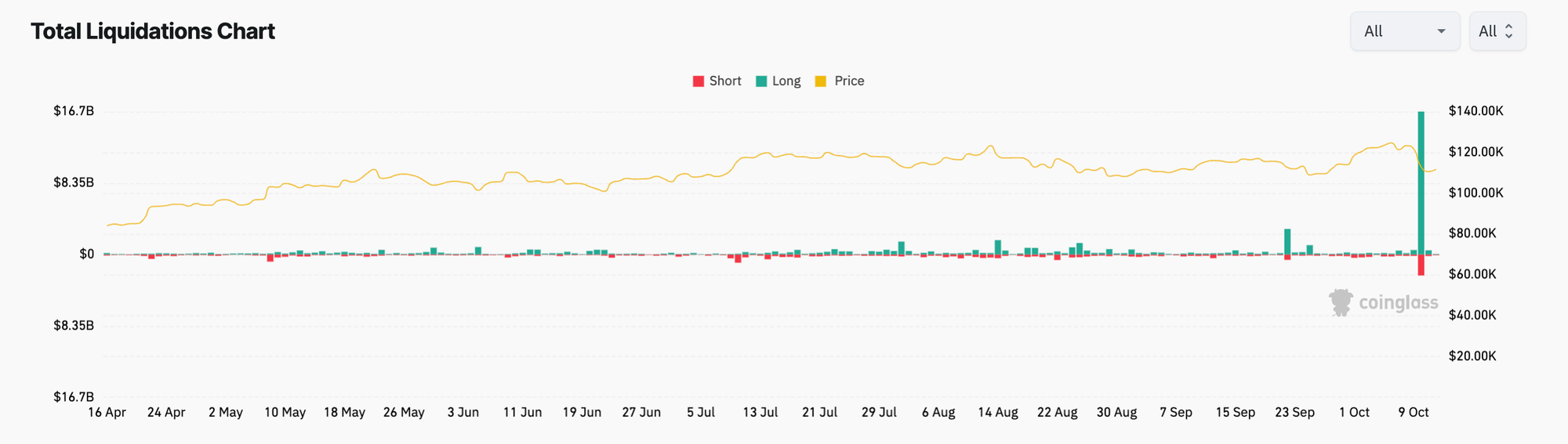 Во время обвала 9-10 октября было ликвидировано криптовалютных позиций на сумму почти $20 миллиардов, что в 20 раз больше, чем во время рыночной паники, вызванной пандемией COVID-19 в 2020 году. Более 1.6 миллиона трейдеров потеряли свои позиции из-за использования финансового рычага.