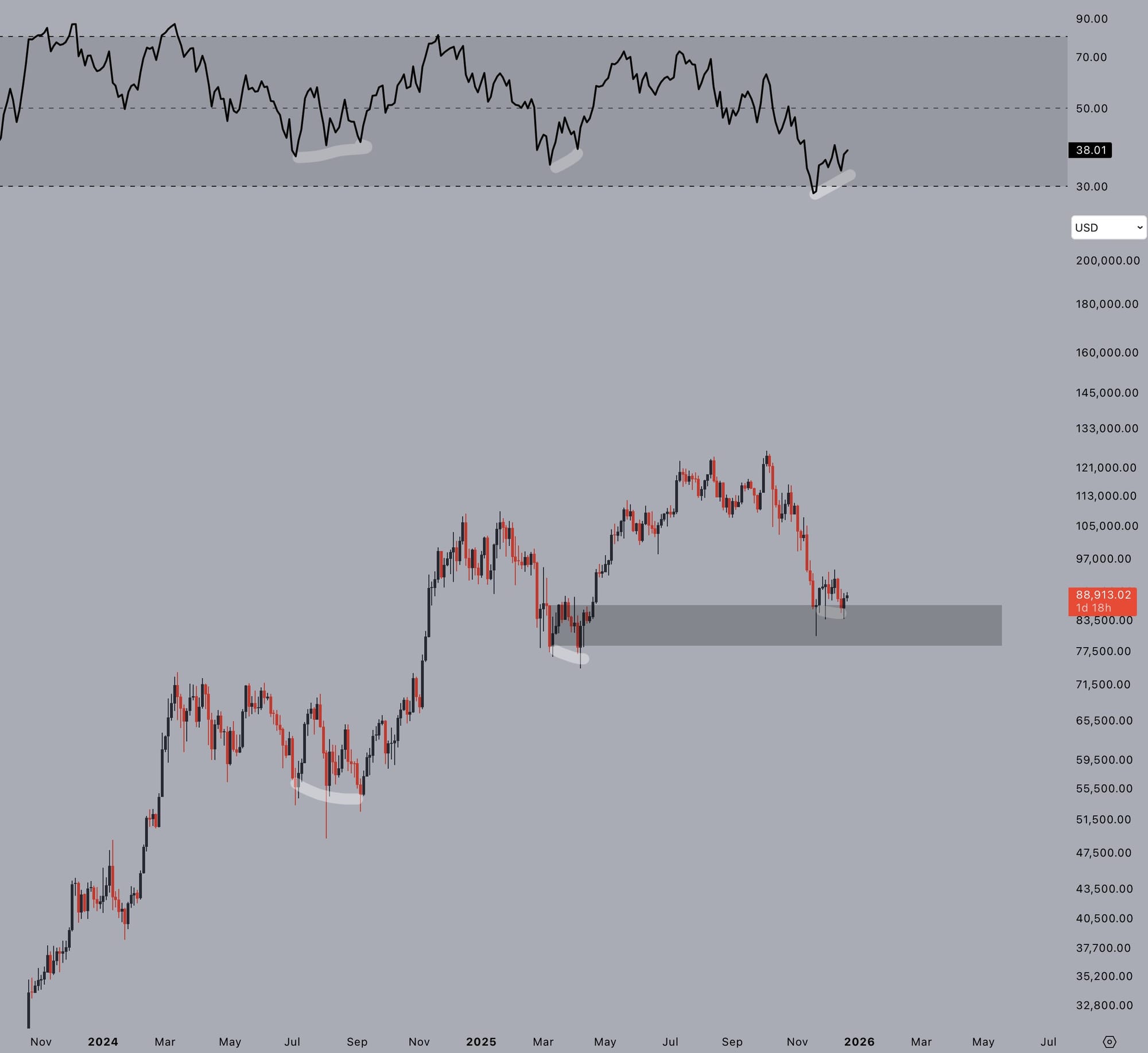 Биткоин (BTC) может установить локальное дно, упав более чем на 35% от рекордного максимума около $126,200, который был зафиксирован два месяца назад, на основе сочетания технических и ончейн индикаторов.