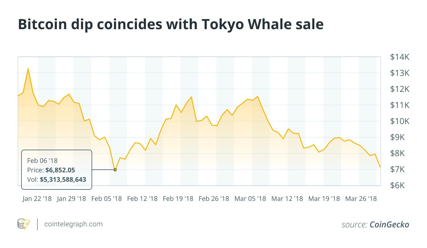 Продажа Кобаяси 6 февраля также совпала со снижением биткойна до около 6,000 долларов, что было наименьшим значением в первом квартале того года. К тому моменту биткойн уже снижался со своего декабрьского пика 2017 года в почти 20,000 долларов во время пика "бума первичных размещений монет (ICO)".