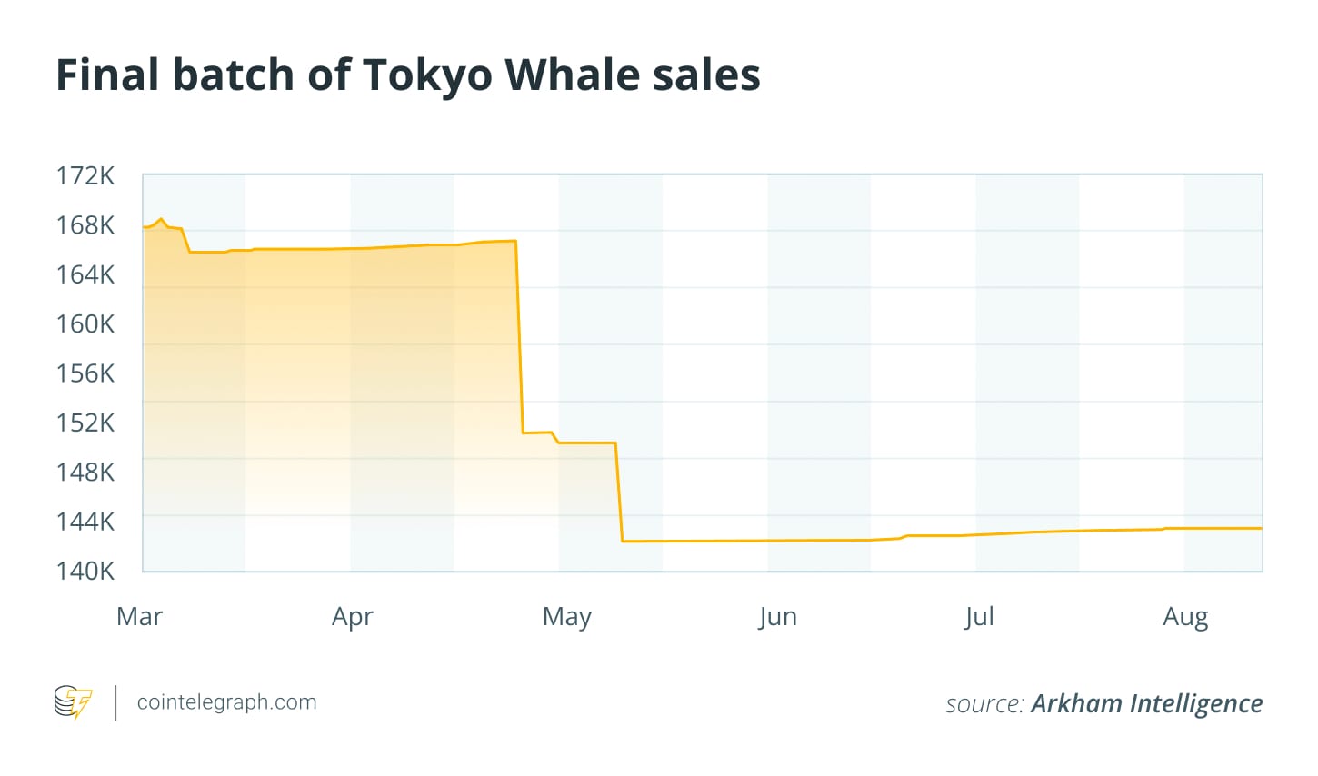 Токийский кит прекращает продажи при остатке около 144,000 BTC