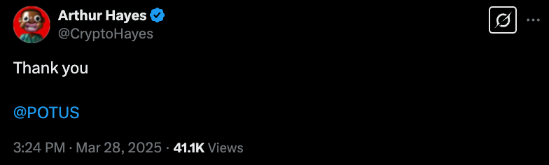 В отличие от других более высокопрофильных помилований, таких как Ульбрихт или Курсон, Белый дом не дал объяснения причин. BitMEX также не прокомментировала. Хейес написал простой публичный пост с благодарностью на X.