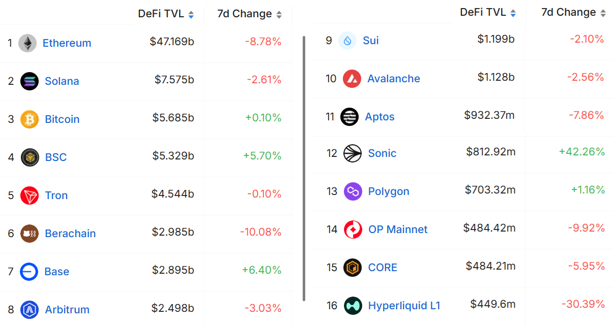 С положительной стороны, Ethereum остается доминирующим лидером по общей заблокированной стоимости (TVL) с $47,2 млрд, но 9% недельное снижение значительно сузило разрыв с конкурентами. Кроме того, ее экосистема второго уровня показала растущие признаки слабости за семь дней до 18 марта.