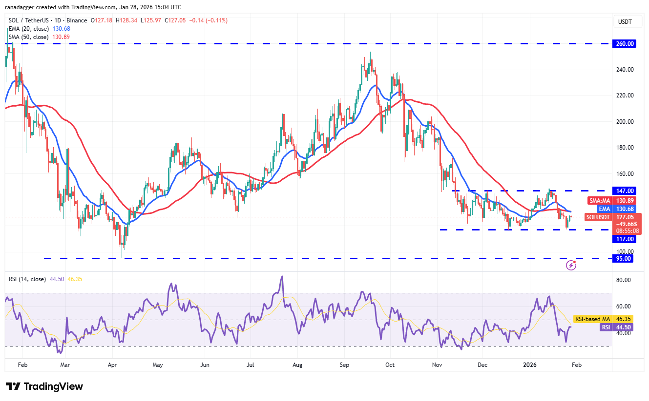 Solana (SOL) в понедельник отскочила от поддержки $117, однако восстановление, вероятно, столкнется с продажами у скользящих средних.