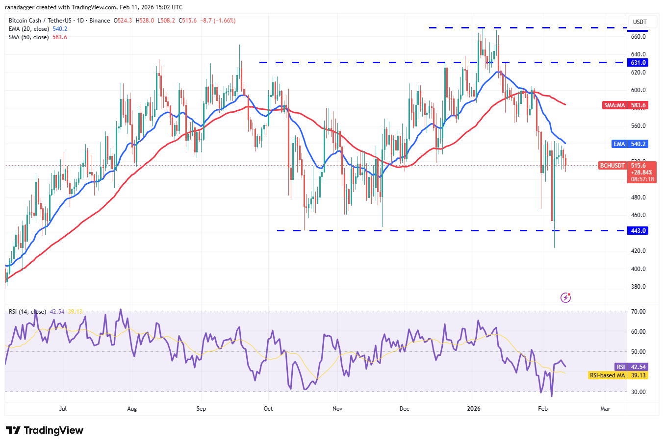 Bitcoin Cash (BCH) по-прежнему встречает жесткое сопротивление у 20-дневной EMA ($540), но покупатели пока не отдают инициативу полностью.