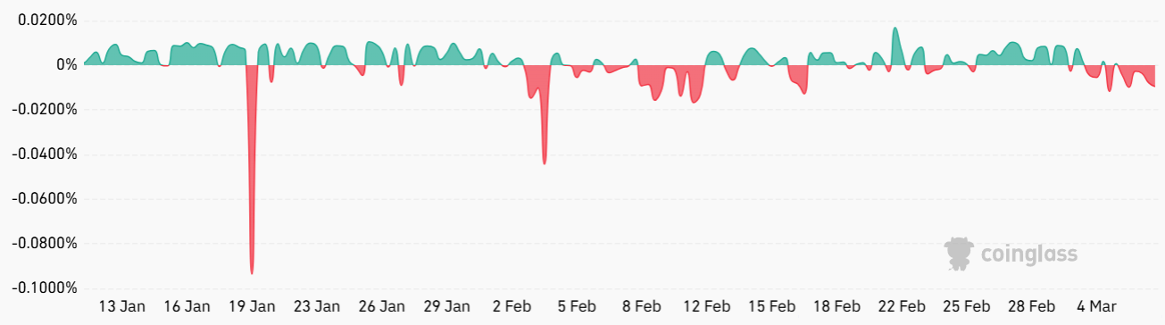 Еще одним фактором, сдерживающим потенциал роста SOL, является отсутствие интереса со стороны трейдеров, использующих кредитное плечо. Финансирование по бессрочным фьючерсам на SOL в последние три дня было отрицательным, что означает, что короткие позиции платят за удержание позиций.