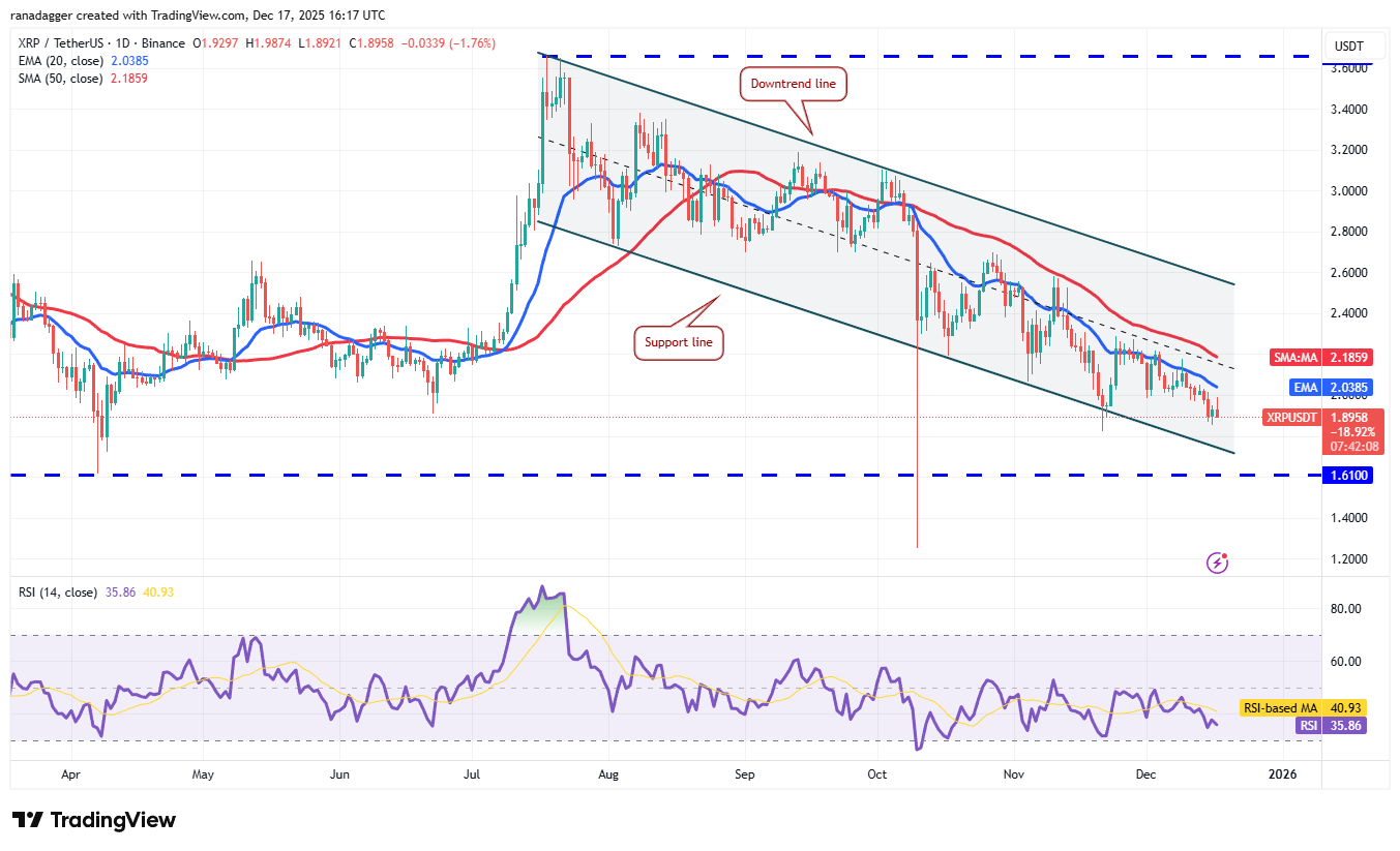 Ожидается, что быки окажут сильную поддержку в зоне между линией поддержки канала и уровнем $1.61. Любое ралли облегчения, вероятно, столкнется с продажами на уровне 20-дневной EMA ($2.03), а затем на 50-дневной простой скользящей средней ($2.18).