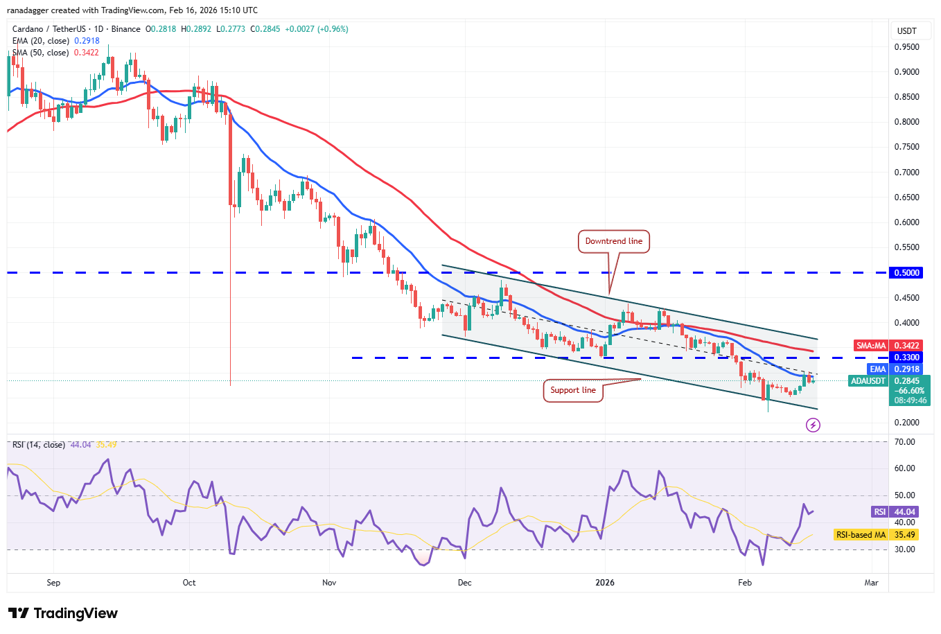 Отскок Cardano (ADA) в субботу дошел до 20-дневной EMA (около $0,29), которая может стать серьезным препятствием.