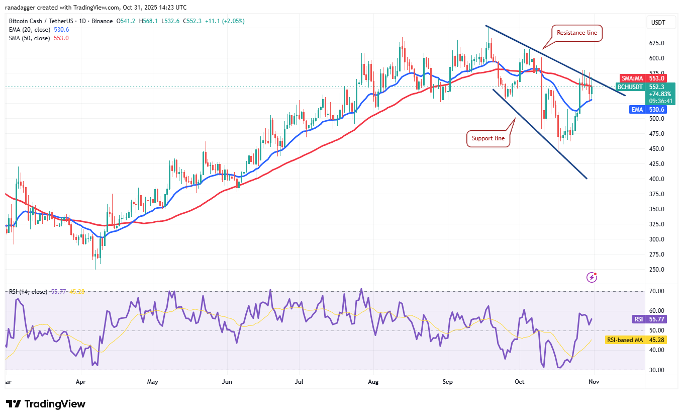 Bitcoin Cash (BCH) застрял между 20-дневной EMA ($530) и линией сопротивления в течение последних нескольких дней.