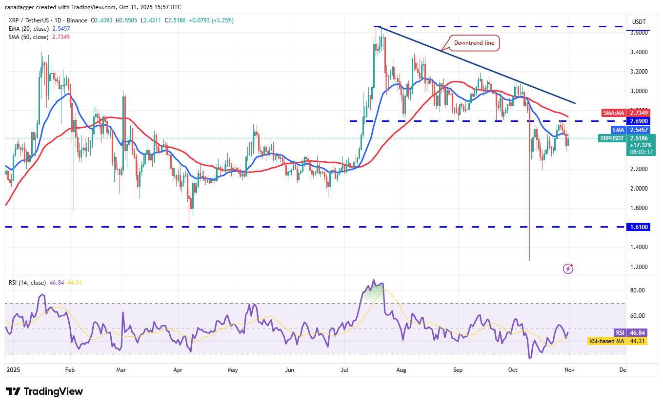 XRP (XRP) упал ниже 20-дневной EMA ($2.54) в четверг, что свидетельствует о попытках медведей сохранить преимущество.