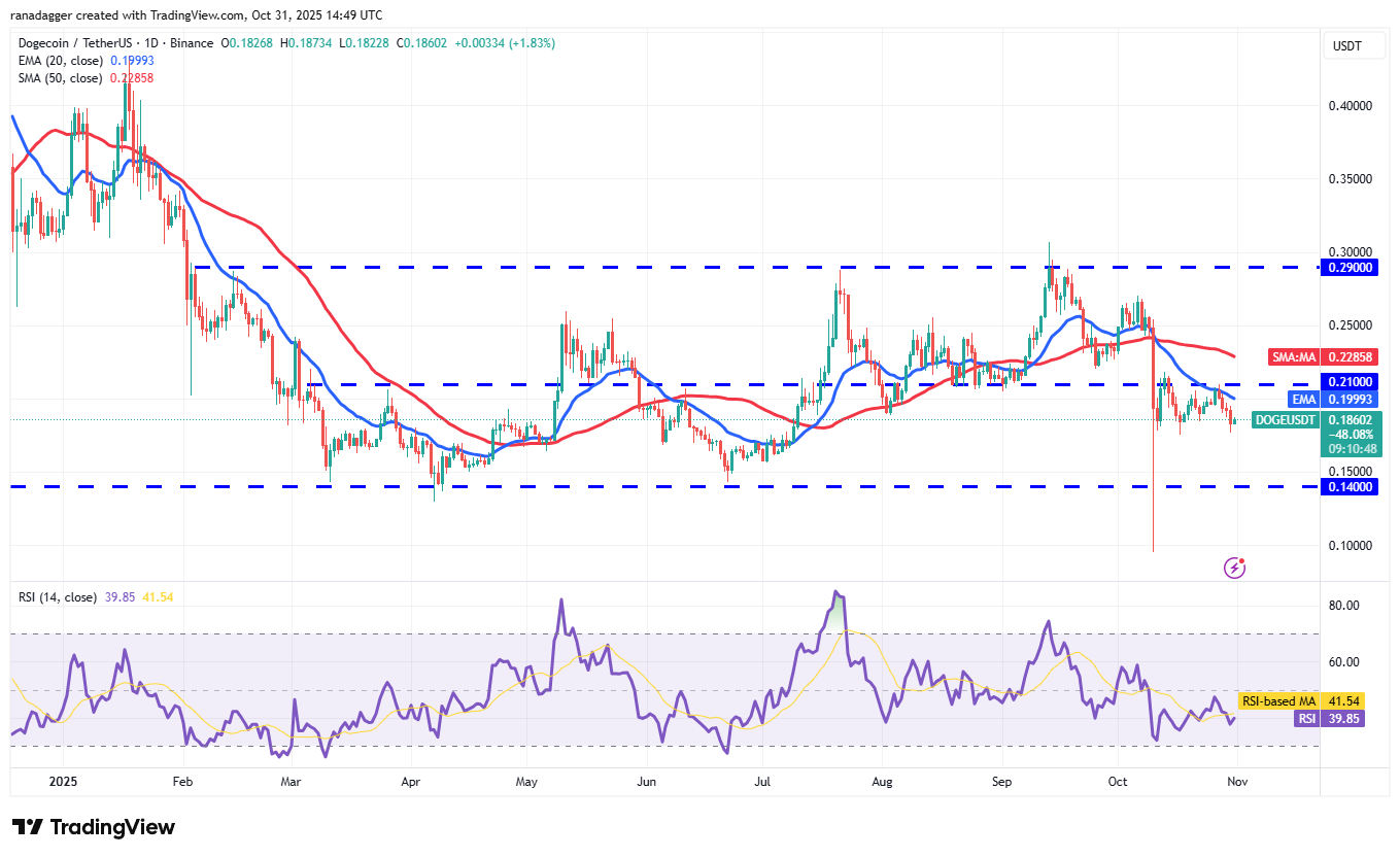Покупатели пытаются удержать Dogecoin (DOGE) выше поддержки $0.17, но небольшой отскок указывает на продолжающееся давление со стороны медведей.