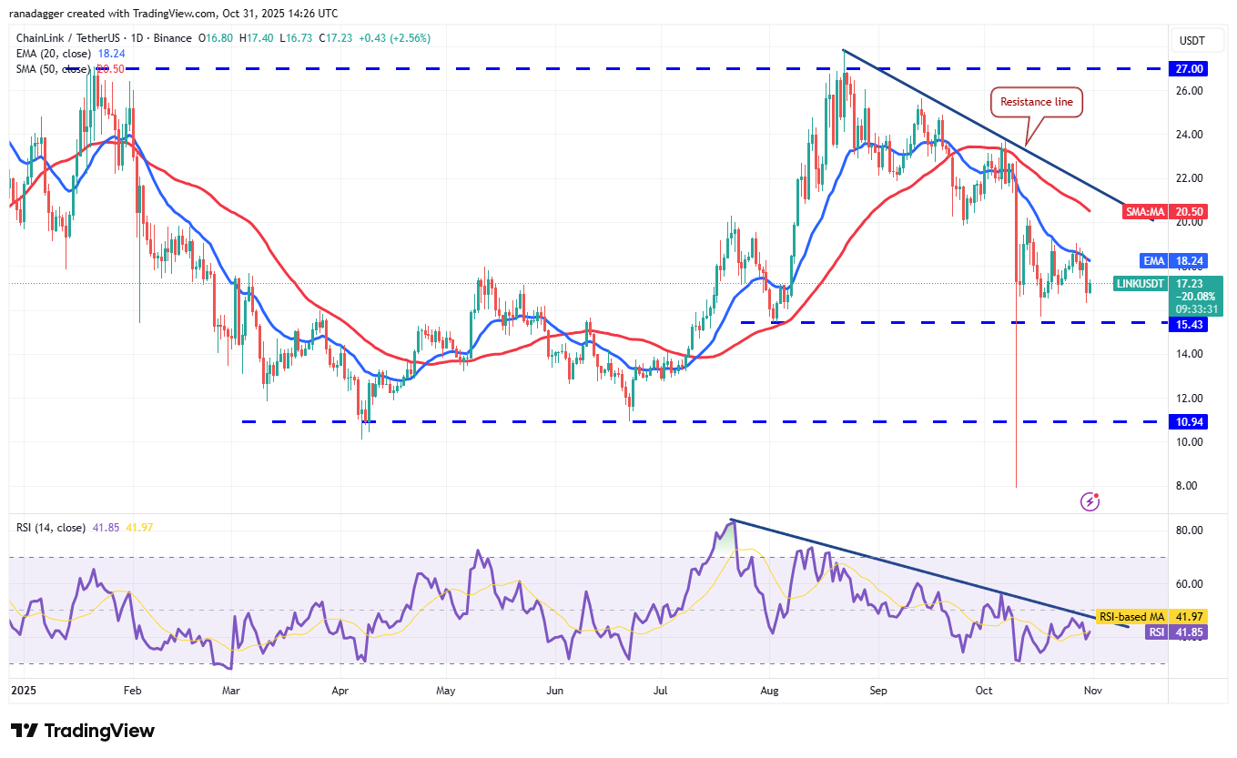 Покупатели пытались поднять цену Chainlink (LINK) выше 20-дневной EMA ($18.24) в среду, но медведи удержали позиции.