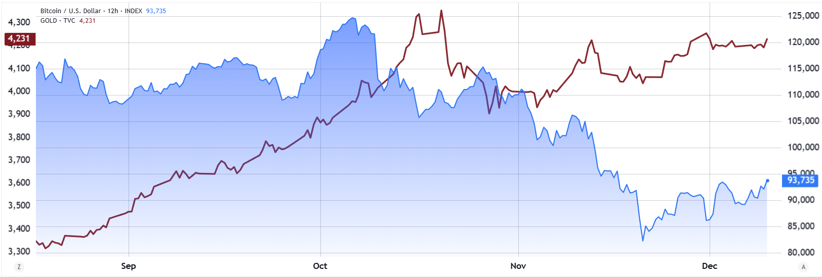 Фондовый рынок напрямую выигрывает от экспансионистской позиции Федеральной резервной системы, так как компании ожидают снижения стоимости капитала и упрощенного потребительского финансирования. Bitcoin, однако, реагирует менее предсказуемо, поскольку инвесторы, уходя из безопасных краткосрочных государственных облигаций, вряд ли рассматривают криптовалюту как надежное средство сбережения.
