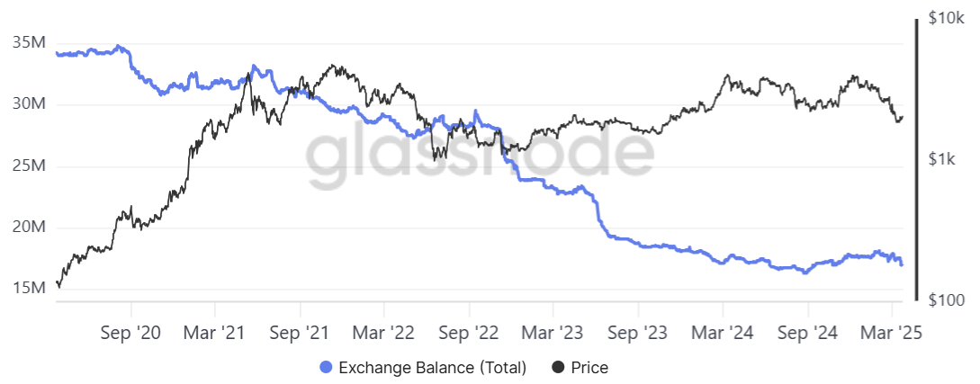 Падение цены Ether ниже $1,900 10 марта, вероятно, отражало чрезмерно пессимистичные ожидания. Однако ситуация, похоже, изменилась, так как сеть Ethereum проявила устойчивость, и трейдеры продолжили выводить средства с бирж, создавая условия для возможного ралли к $2,500.