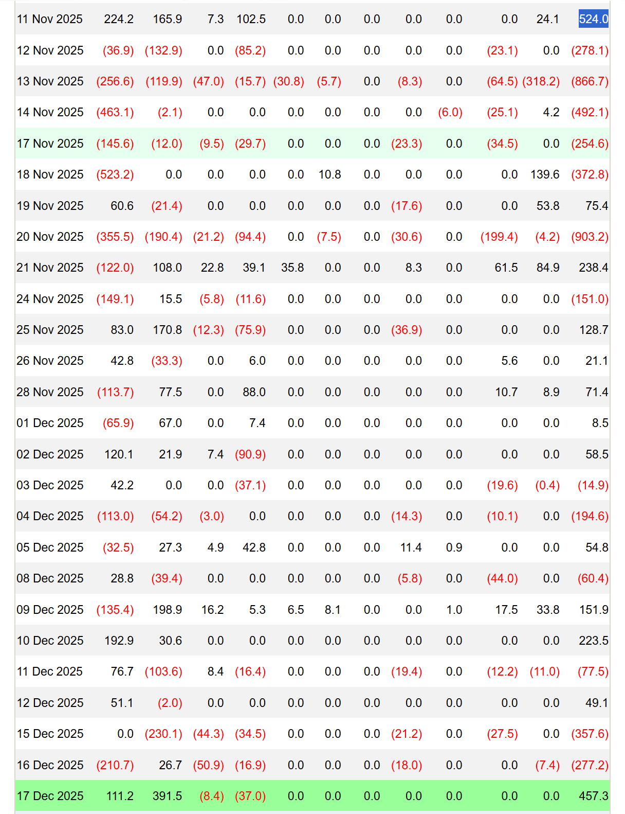 Возобновление роста последовало за нестабильным периодом в ноябре и начале декабря, когда поступления чередовались между умеренными притоками и резкими оттоками. Спотовые ETF на биткоин в последний раз видели приток свыше $450 млн 11 ноября, когда они привлекли порядка $524 млн за один день.