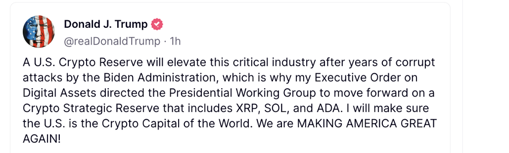Относится к теме: Должны ли XRP, SOL или ADA входить в американский криптовалютный резерв?