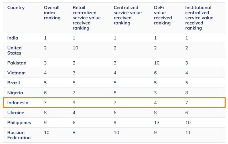 Chainalysis ставит Индонезию в число ведущих крипторынков мира, она занимает седьмое место в мировом рейтинге принятия в 2025 году и лидирует в Юго-Восточной Азии.