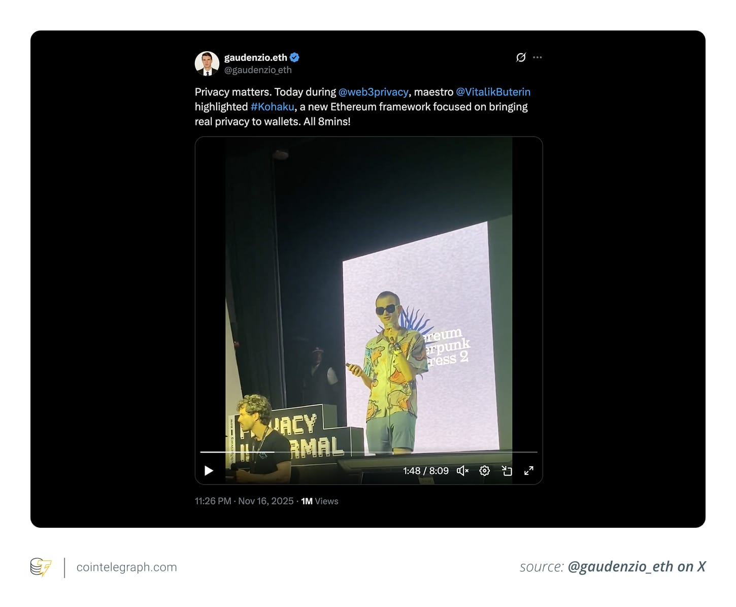 Когда Виталик Бутерин выступил на Devcon 2025 с демонстрацией Kohaku, он кратко описал ситуацию с Ethereum. Сеть обладает сильными механизмами безопасности и приватности, а также надежной защитой начального уровня. Однако в области кошельков и приложений, которые используют пользователи, сеть все еще отстает.