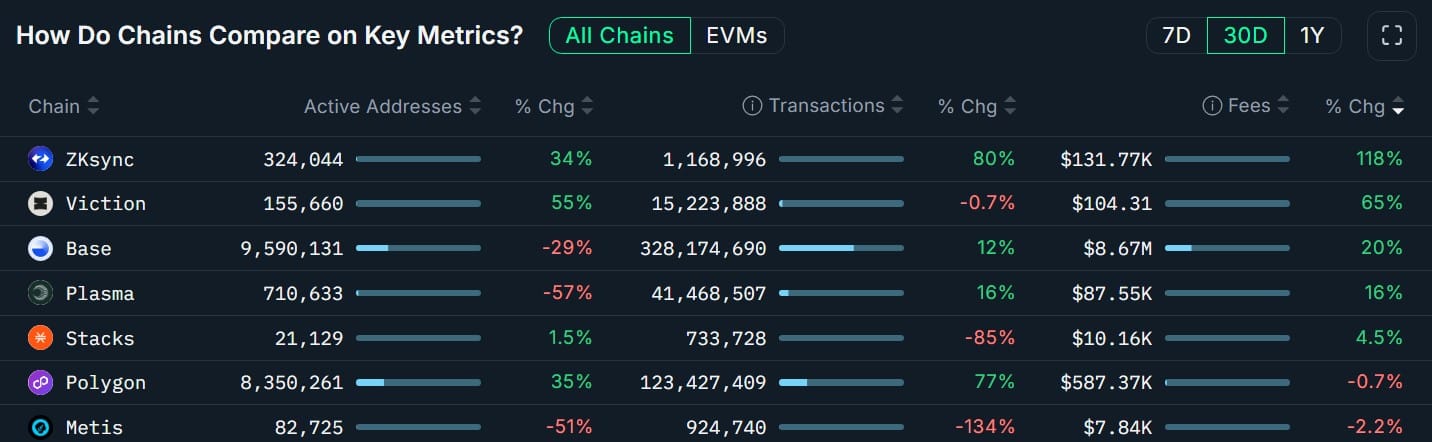 Данные от Nansen в начале ноября показали, что ZKsync лидирует в отрасли по росту сборов за семидневный период. Глучовский пояснил, что увеличение связано не с розничной спекуляцией, а с активностью после выпуска новых предложений по токеномике и стейкингу.