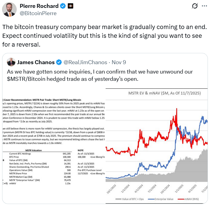 «Медвежий рынок компаний с казначейскими Bitcoin постепенно подходит к концу», — сказал глава The Bitcoin Bond Company Пьер Рошар в ответ.