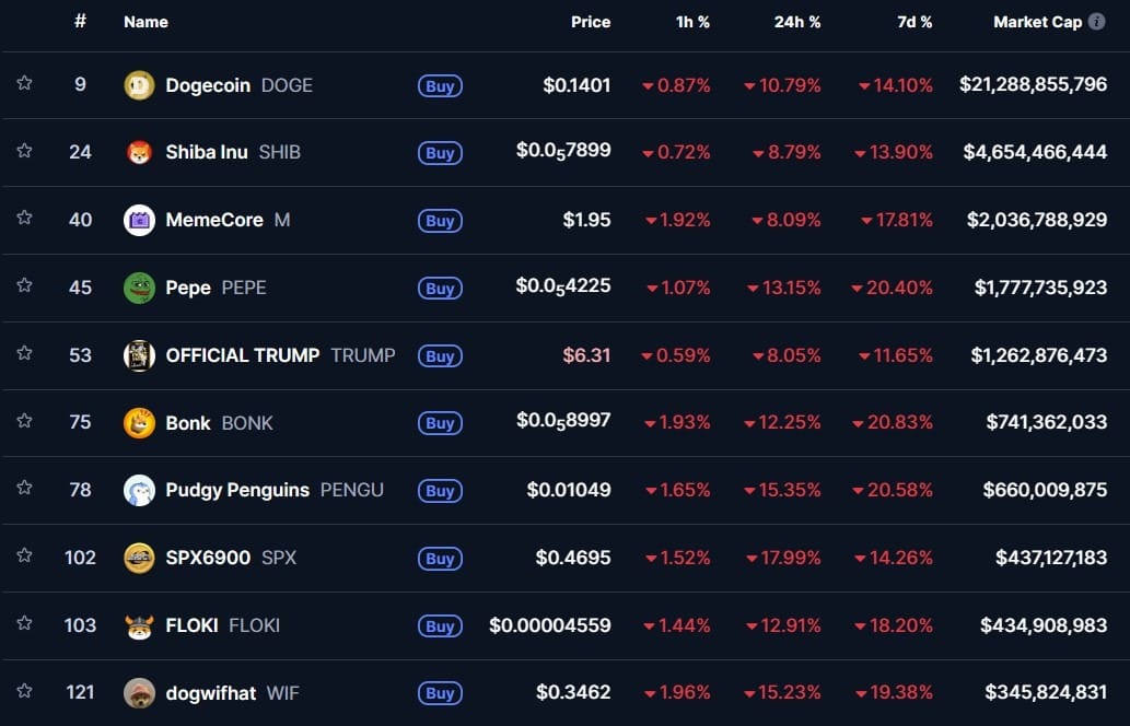 Рынок мемкоинов рухнул до минимума 2025 года, потеряв $5 млрд за день