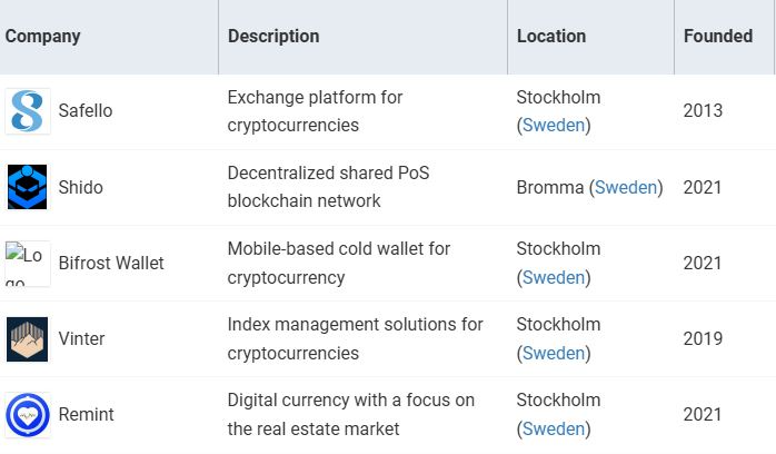 Платформа базы данных компаний Tracxn перечисляет 85 компаний, работающих в шведском криптосекторе, включая 20, которые совместно привлекли 48 миллионов долларов венчурного капитала и частного финансирования.