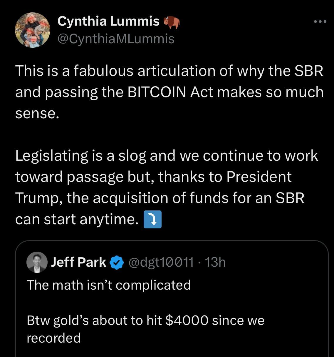 В ответ Ламмис заявила, что это было “великолепное обоснование того, почему SBR и принятие закона BITCOIN так важны.”