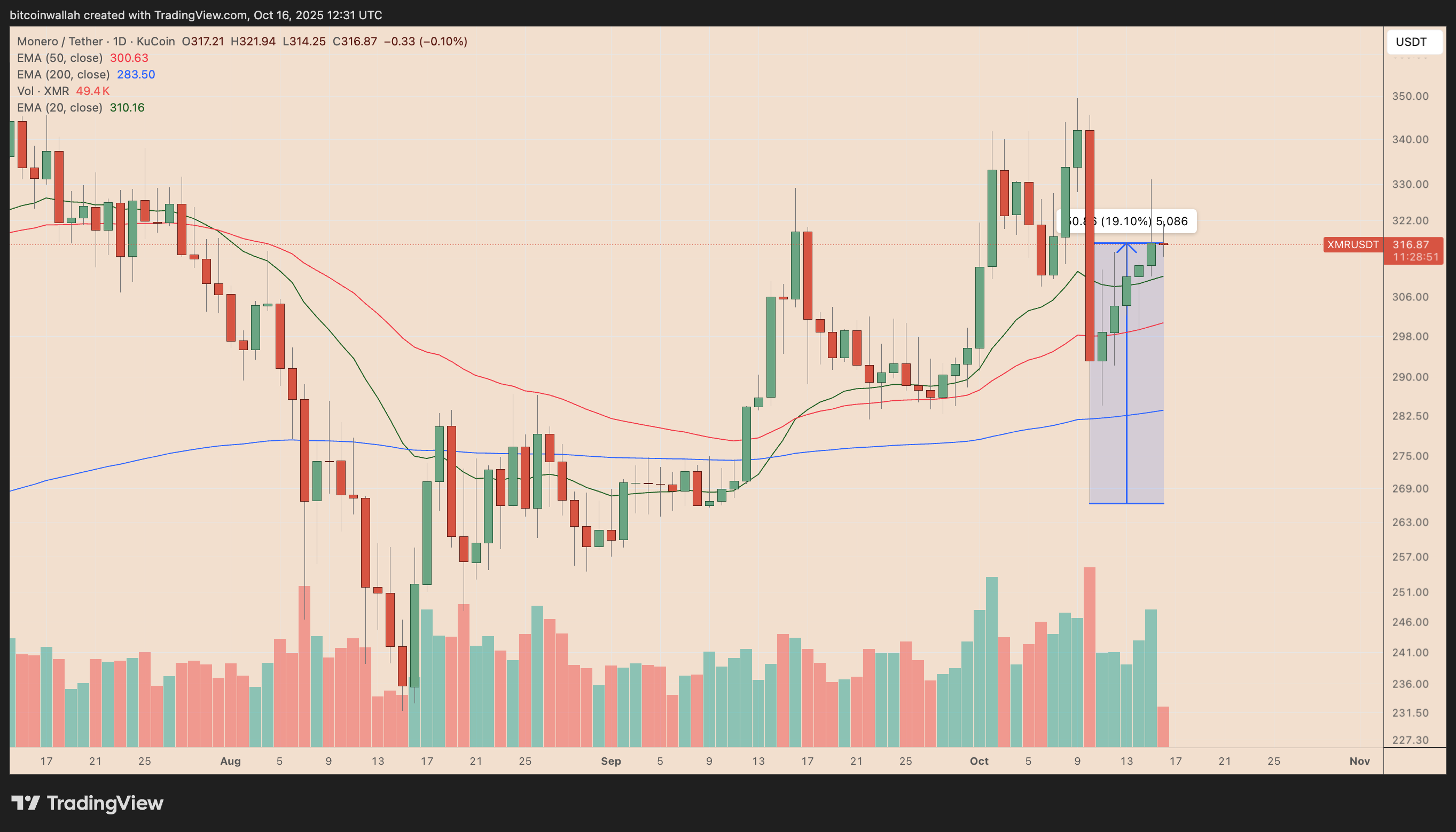 Monero (XMR), ведущая приватная монета по рыночной капитализации, не участвовала в таких резких восстановлениях. Она остается удаленной или ограниченной на большинстве крупных бирж, включая Binance и OKX, а также на нескольких европейских торговых платформах из-за ее непрозрачного дизайна.