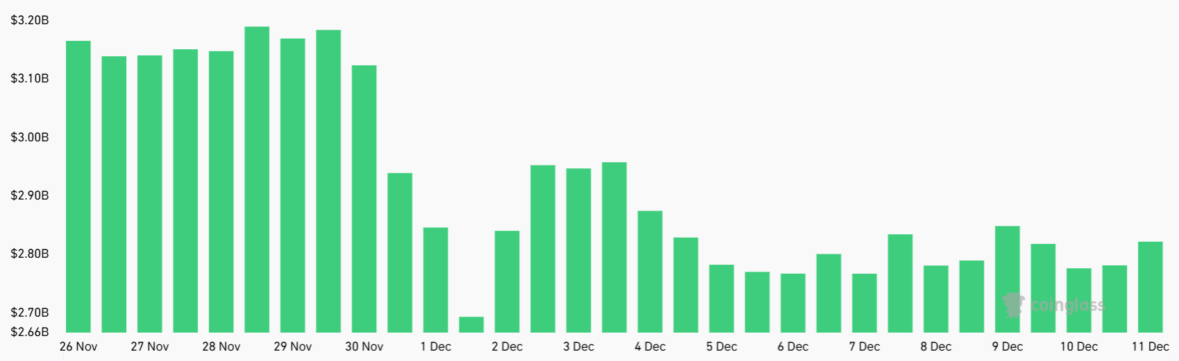 Совокупный открытый интерес по фьючерсам на XRP составил $2.8 миллиарда в четверг, без изменений по сравнению с предыдущей неделей. Тем не менее, позиции с кредитным плечом не восстановили уровень $3.2 миллиарда, достигнутый в конце ноября. Данные показывают, что медведи по XRP неохотно увеличивают экспозицию, особенно после того, как токен уже упал на 45% с $3.66 в июле.