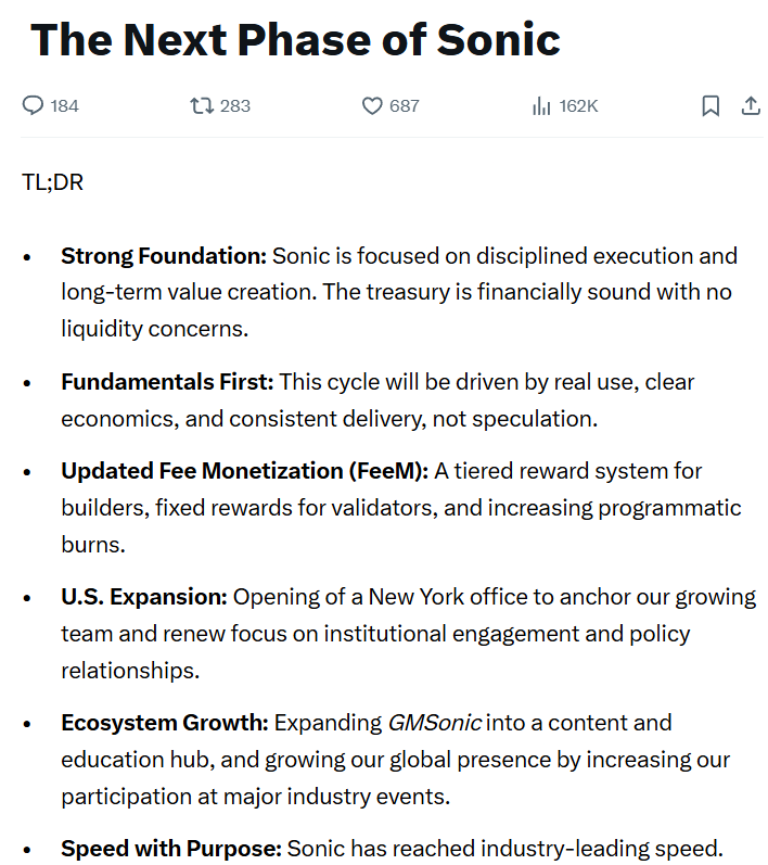 Хотя “цена сама по себе не является целью”, генеральный директор добавил, что Sonic Labs будет сосредоточена на создании прочной основы для долгосрочного роста токенов.