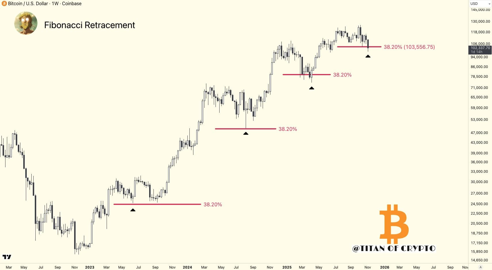 Трейдер Titan of Crypto основывал значимость этого ценового уровня на уровнях Фибоначчи, с потенциальной угрозой для бычьего рынка.