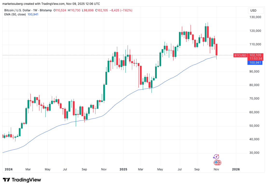 Другие наблюдали за закрытием выше 50-недельной экспоненциальной скользящей средней (EMA), которая на данный момент составляет $100,940, как признаком силы.