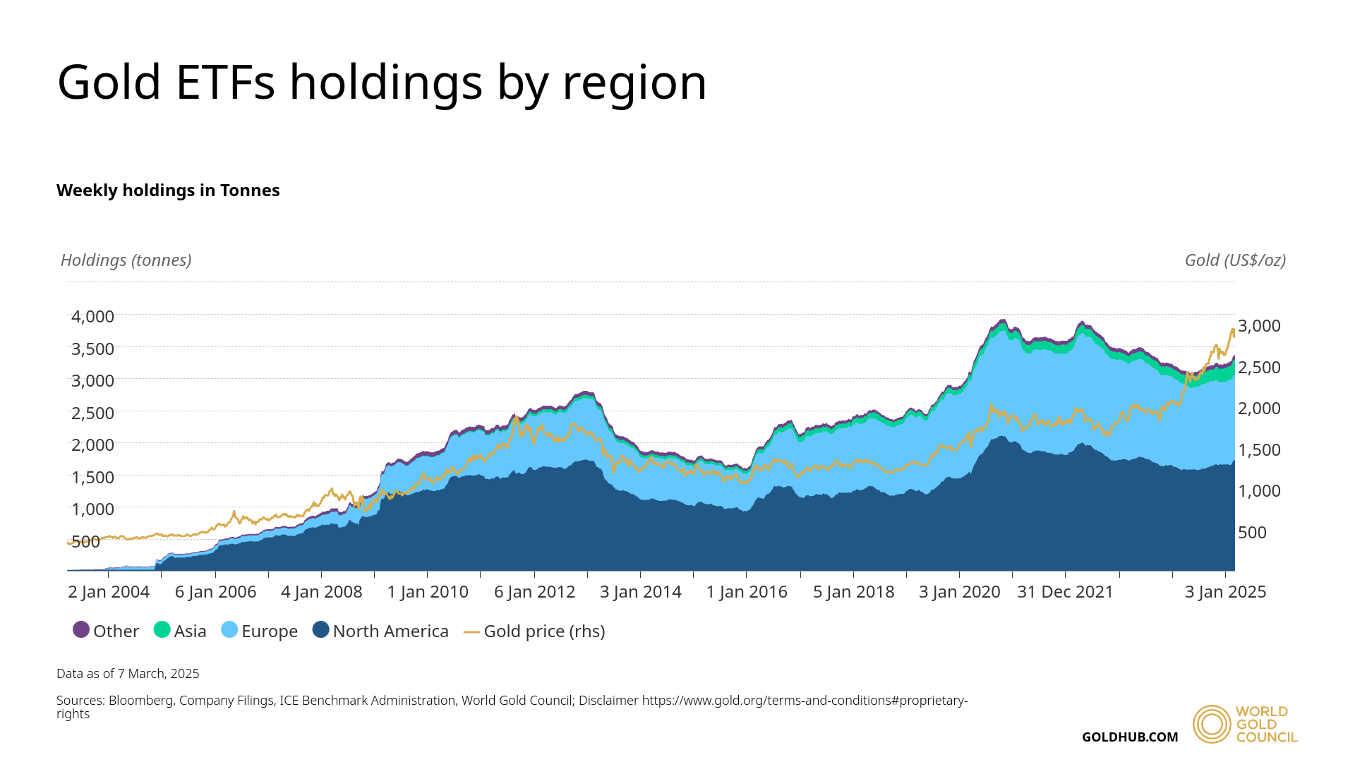 Доли золотых ETF по регионам. Источник: GoldHub.com
