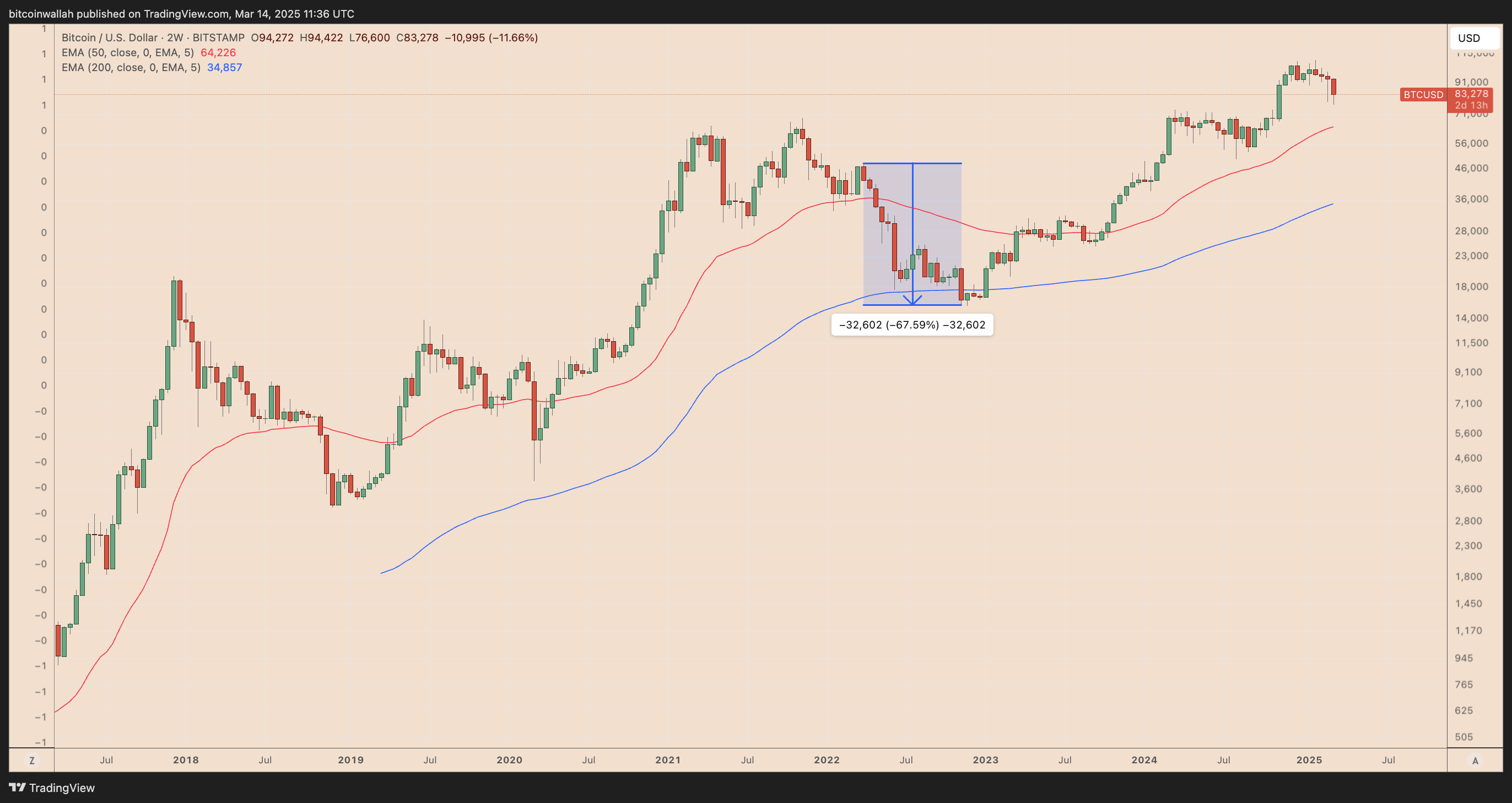 Двухнедельный график динамики BTC/USD. Источник: TradingView