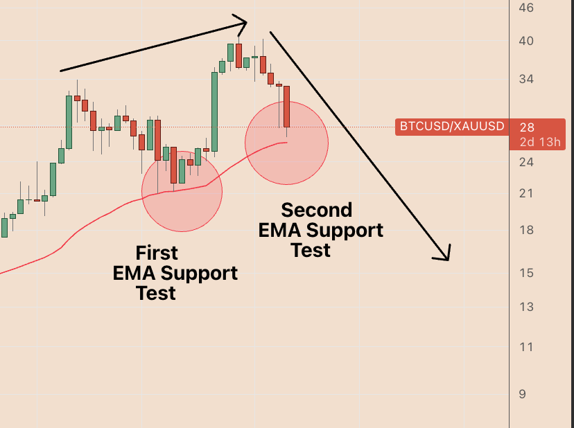 BTC/XAU снова завершило двухфазное тестирование EMA, отражая фрактал 2021–2022 годов.