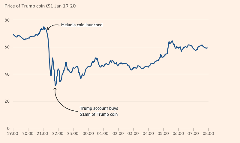 Аккаунт Трампа вмешался в рынок после запуска мем-монеты MELANIA. Источник: FT