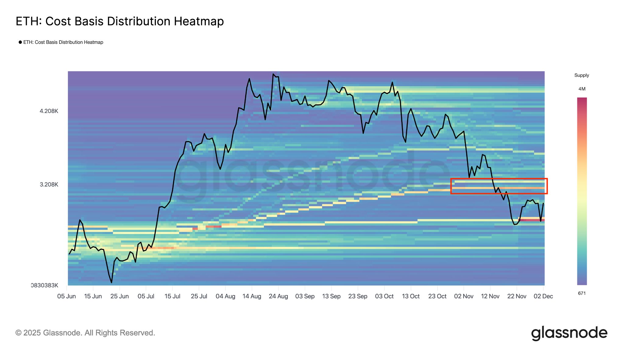 Именно здесь инвесторы приобрели около 5,1 миллиона ETH, согласно тепловой карте распределения базисной стоимости Glassnode.
