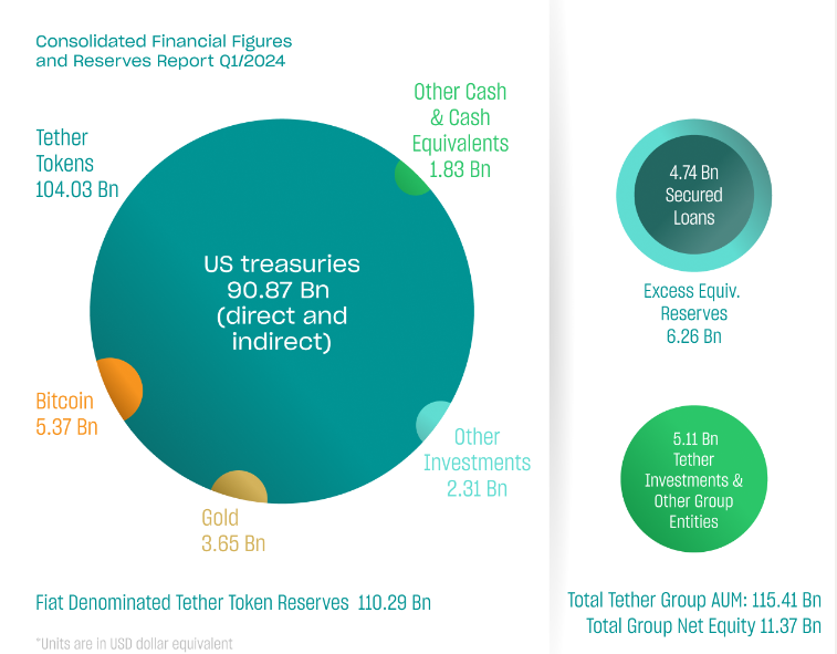 Финансовые резервы Tether, Q1 2024. Источник: Tether