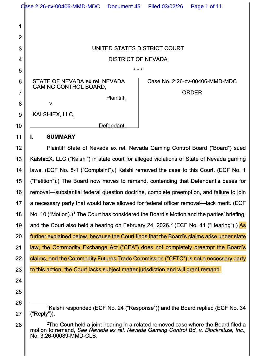 Судья указал, что оговорка CEA о сохранении полномочий не устраняет полностью власть штата, а компании не показали оснований, чтобы на данном этапе заблокировать действия Невады.