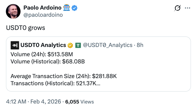 Ардоино попытался обосновать оценку, сравнив прибыльность Tether с ИИ-платформами вроде OpenAI, которые, как сообщалось, получали оценку порядка $500 млрд после сделки с долей SoftBank прошлой осенью.