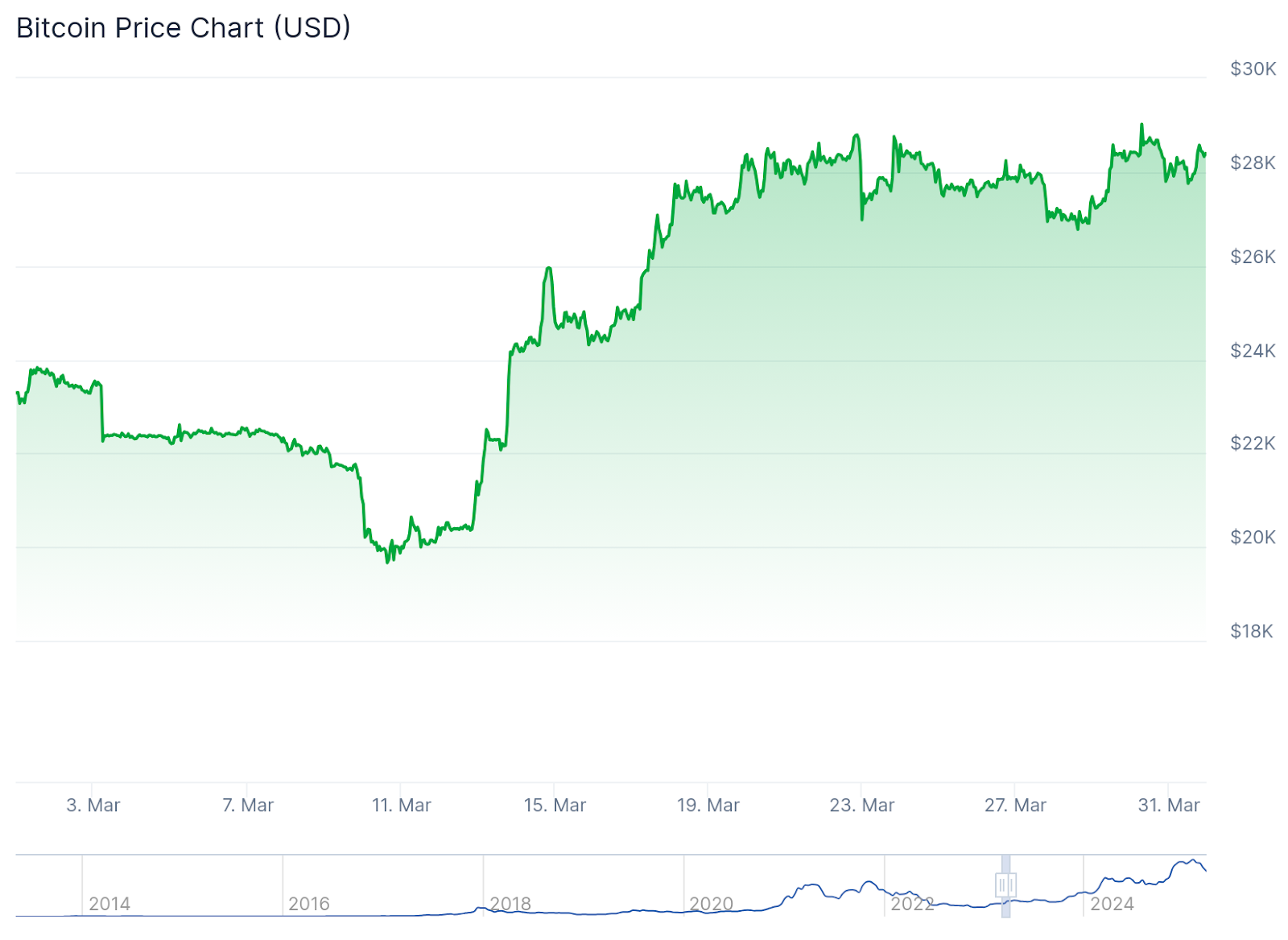 Другие, включая Кэти Вуд из Ark Investment, согласны с тем, что Биткоин стал безопасным активом во время банковских кризисов SVB и Signature в марте 2023 года. Когда SVB закрылся 10 марта 2023 года, цена Биткоина составляла около 20 200 долларов, по данным CoinGecko. Неделю спустя она была около 27 400 долларов, что почти на 35% больше.