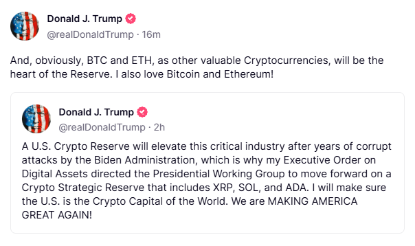 Трамп раскрывает карты: XRP, SOL, ADA, BTC и ETH в крипторезерве США